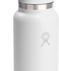 Hydro Flask Water Bottle – Insulated Stainless Steel – Wide Mouth Flex Straw Lid, Non Spill, Leakproof and Refillable in 32 Oz Tonal White