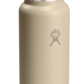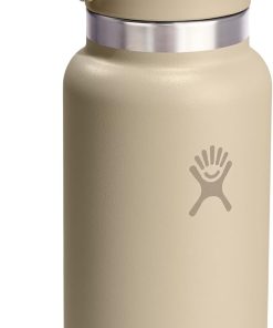 Hydro Flask Water Bottle – Insulated Stainless Steel – Wide Mouth Flex Straw Lid, Non Spill, Leakproof and Refillable in 32 Oz Tonal Oat