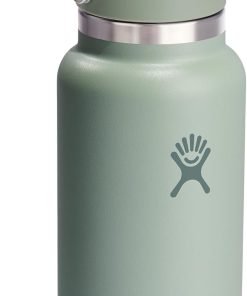 Hydro Flask Water Bottle – Insulated Stainless Steel – Wide Mouth Flex Straw Lid, Non Spill, Leakproof and Refillable in 32 Oz Tonal Agave