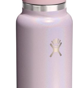 Hydro Flask Water Bottle – Insulated Stainless Steel – Wide Mouth Flex Straw Lid, Non-Spill, Leakproof and Refillable in 32 Oz Glimmer Pink