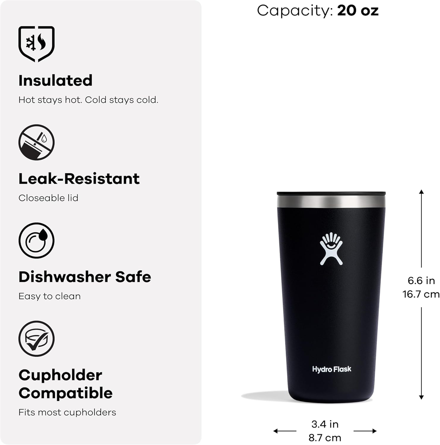 Brand Name: Hydro Flask , Recommended Uses For Product: Travel , Included Components: All Around Tumbler , Specific Uses For Product: Floor , Age Range Description: Adult , Manufacturer: HYDRO FLASK , UPC: 810070089641 , Model Number: HU-XI-48 , Manufacturer Part Number: T20CPB001 , Manufacturer Warranty Description: LIFETIME , Item Type Name: Tumbler , Best Sellers Rank: #2,632 in Kitchen & Dining (See Top 100 in Kitchen & Dining)#55 in Insulated Tumblers , ASIN: B0BNM13DT3 , Customer Reviews: 4.44.4 out of 5 stars(3,237)4.4 out of 5 stars , Other Special Features of the Product: Bpa-free,Dishwasher Safe , Color: Black , Product Style: Press-in Lid , Theme: Solid , Shape: Round , Pattern: Solid , Occasion: All Occasions , Material Type: Stainless Steel , Product Care Instructions: Hand Wash Only, Machine Wash , Material Features: Fragrance Free , Reusability: Reusable , Is the item dishwasher safe?: Yes , Capacity: 1.3 Pounds , Unit Count: 1.0 Count , Item Weight: 0.75 Pounds , Number of Items: 1 , Size: 20 Ounces , Brand: Hydro Flask , Material: Stainless Steel , Color: Black , Capacity: 1.3 Pounds , Special Feature: Bpa-free,Dishwasher Safe