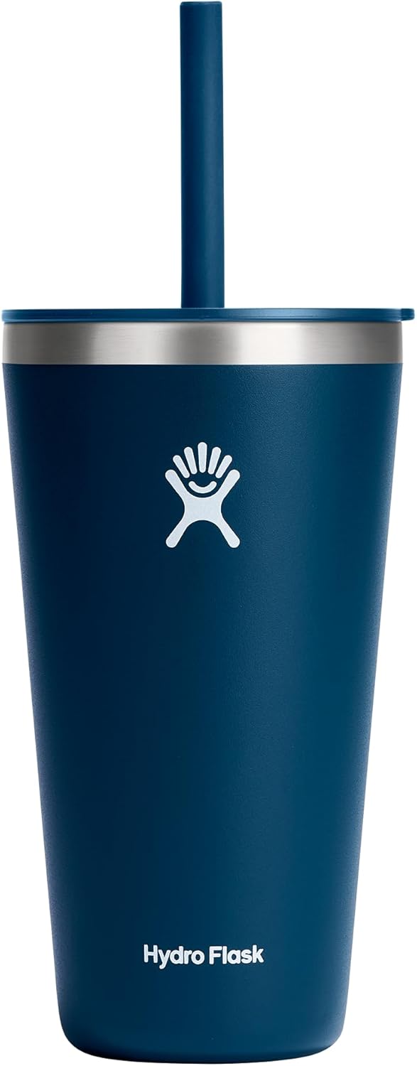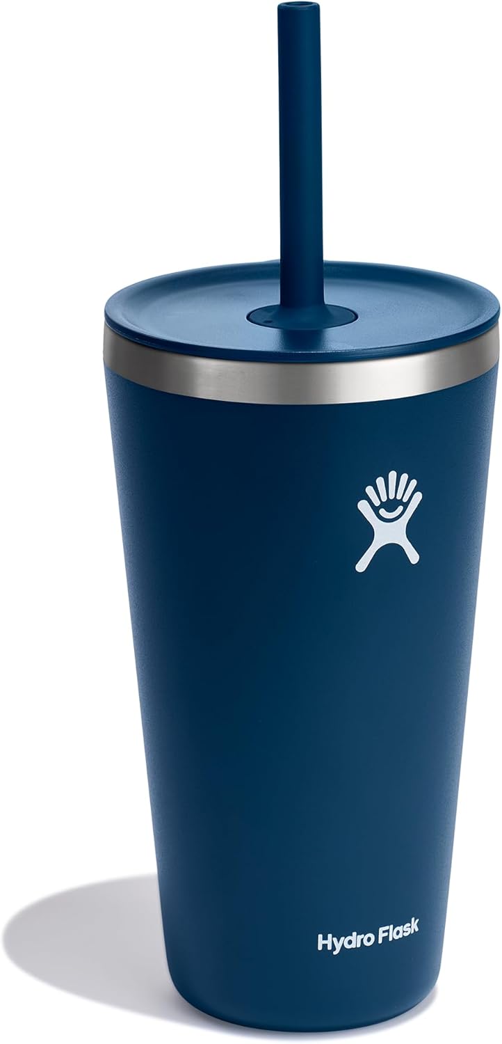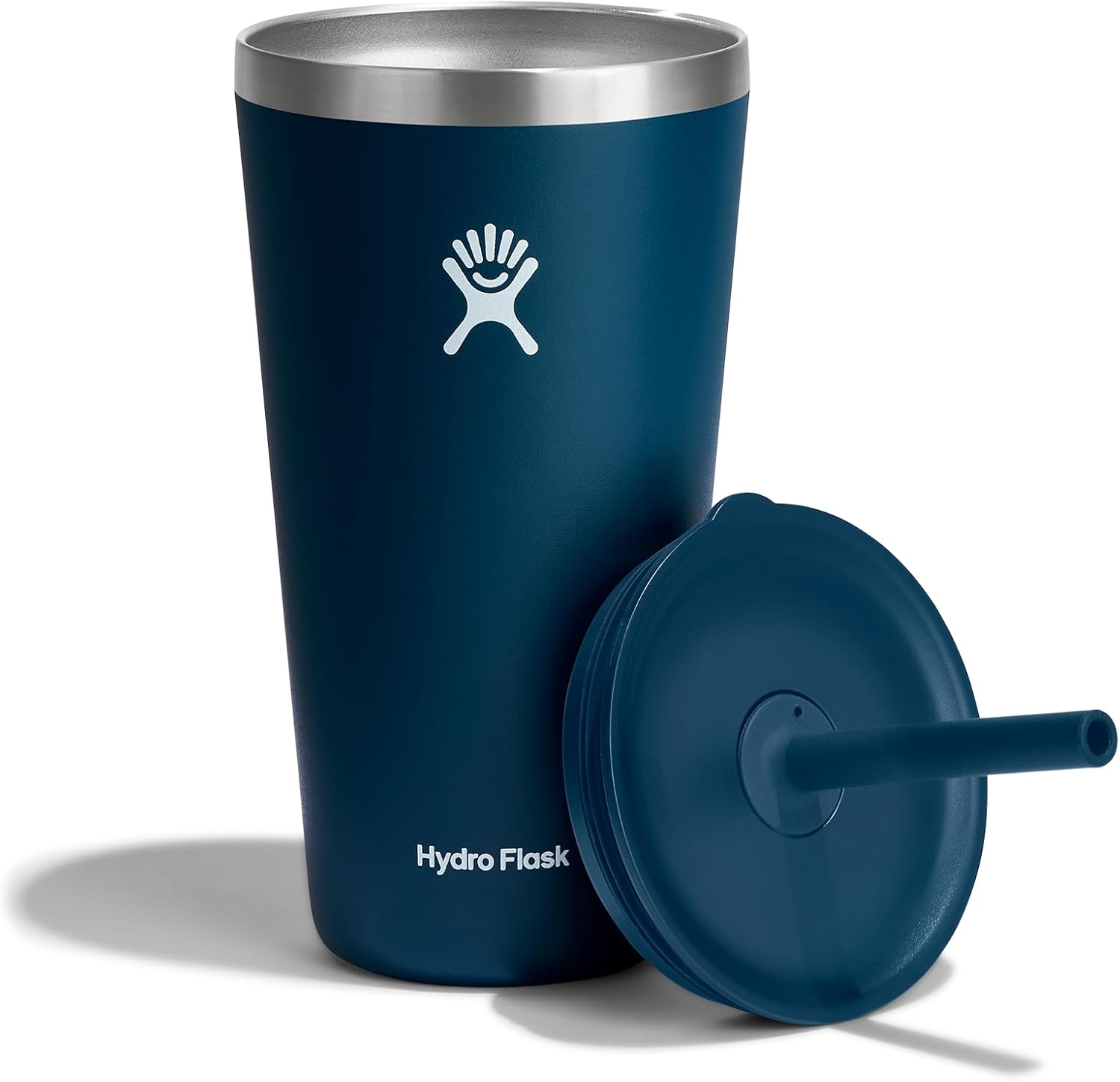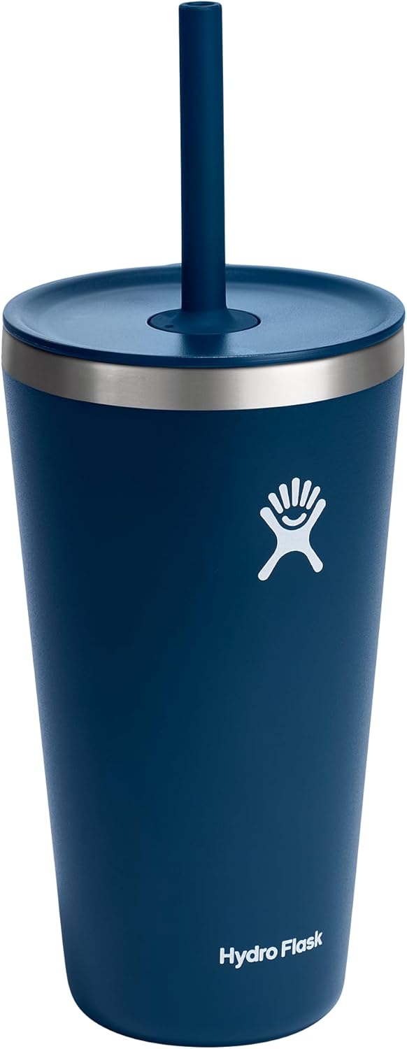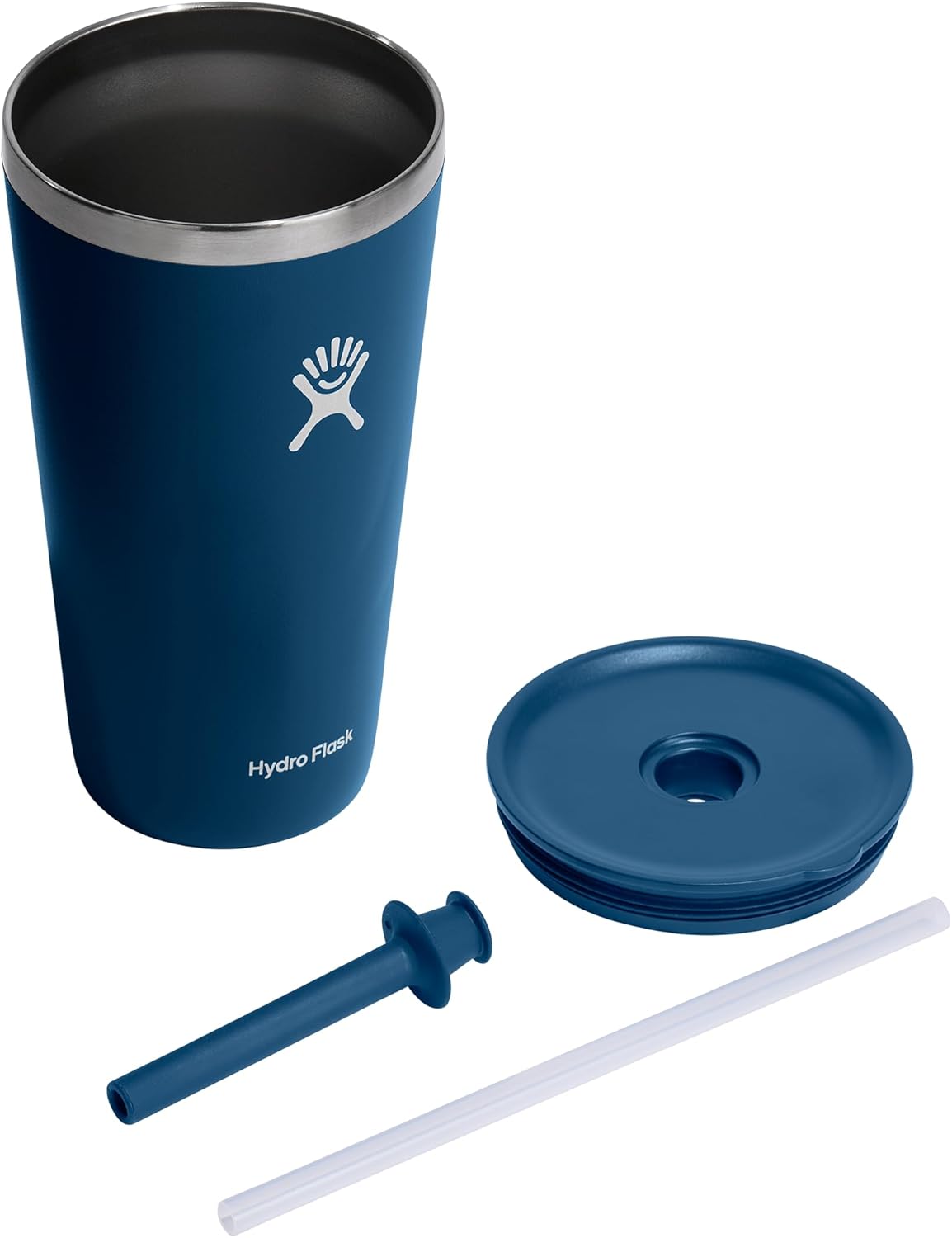 28 OZ INDIGO STRAW TUMBLER The 28 oz Hydro Flask All Around Tumbler with Straw Lid is ready for smoothies to lemonade, and everything in between, keeping drinks cold for hours. The leak-resistant Straw Lid keeps your favorite drink at the ready and easy to sip.
