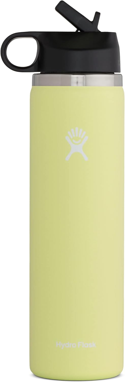 Hydro Flask 24 oz Wide Mouth with Straw Lid Stainless Steel Reusable Water Bottle – Vacuum Insulated, Dishwasher Safe, BPA-Free, Non-Toxic