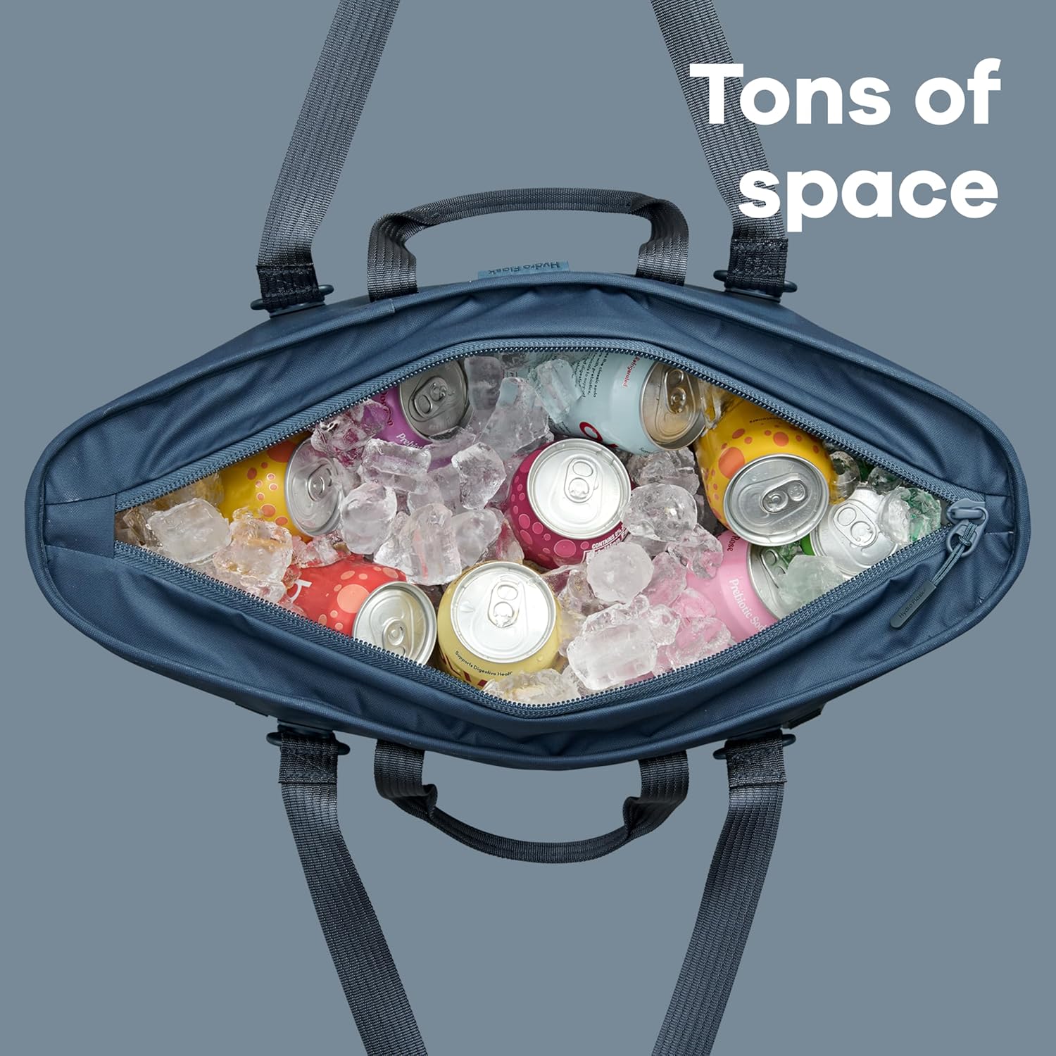 LARGE HARBOR BLUE INSULATED TOTE 30 L Carry it all with the newest Carryout Cooler Totes, boasting all-day cold. The tote style was created with comfortable carrying in mind, featuring the FlexClip Strap System with removable and customizable handles and straps.