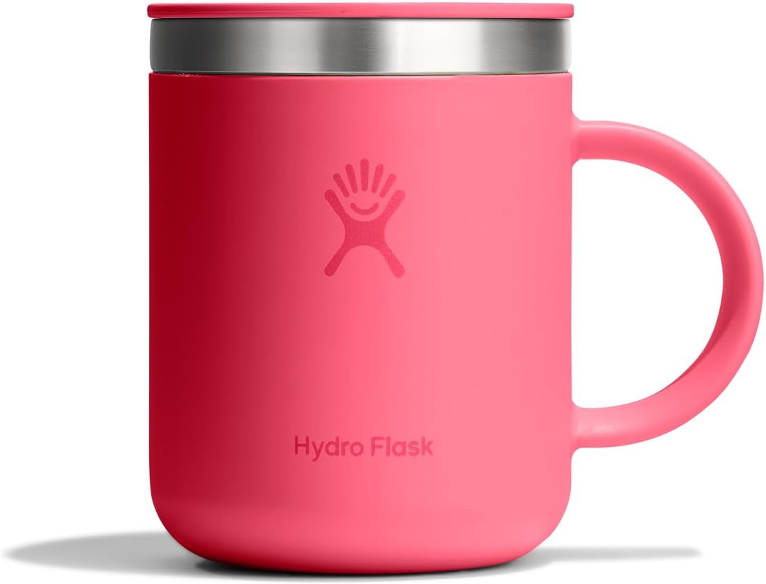 The Hydro Flask 12 oz stainless steel insulated mug keeps drinks hot for hours. Sized for perfect pours with a closeable, splash-resistant lid.