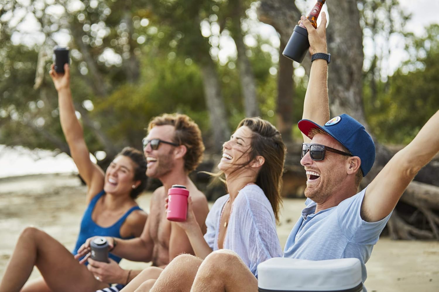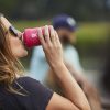 Dual-use design works with a wide range of bottles and cans or can be used as a beverage cup