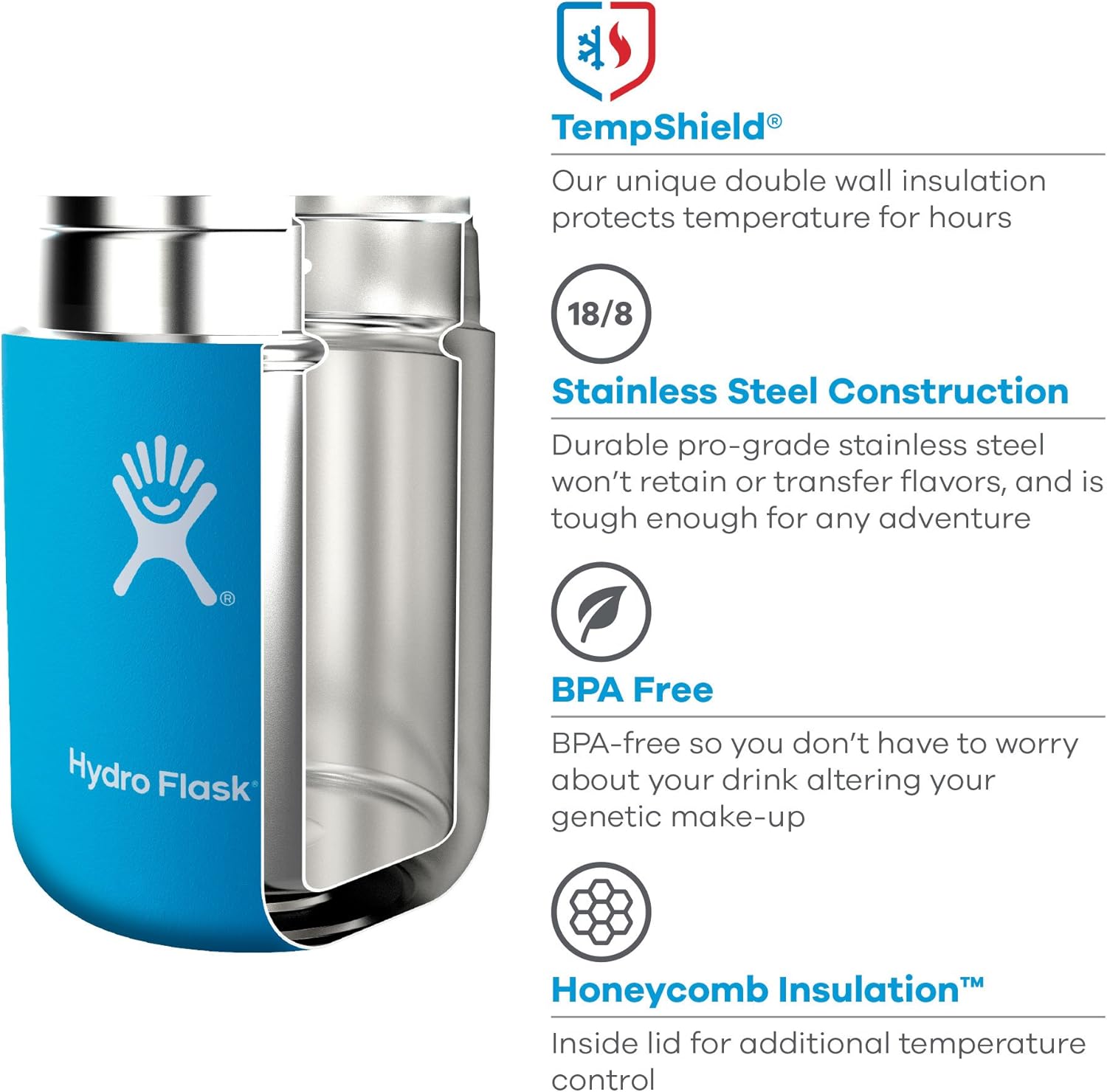 Brand Name: Hydro Flask , Included Components: Lid , Customer Reviews: 4.44.4 out of 5 stars(132)4.4 out of 5 stars , ASIN: B07ND1GY7R , Item Height: 5.5 inches , Material Type: Stainless Steel , Product Care Instructions: Dishwasher Safe , Is the item dishwasher safe?: No , Capacity: 12 Fluid Ounces , Item Weight: 12 Ounces , Number of Items: 1 , Base Diameter: 3.46 Inches , Additional Features: Leakproof , Cap Type: Screw Cap , With Lid: Yes , Color: Black , Theme: Food , Brand: Hydro Flask , Capacity: 12 Fluid Ounces , Color: Black , Special Feature: Leakproof , Item Weight: 12 Ounces