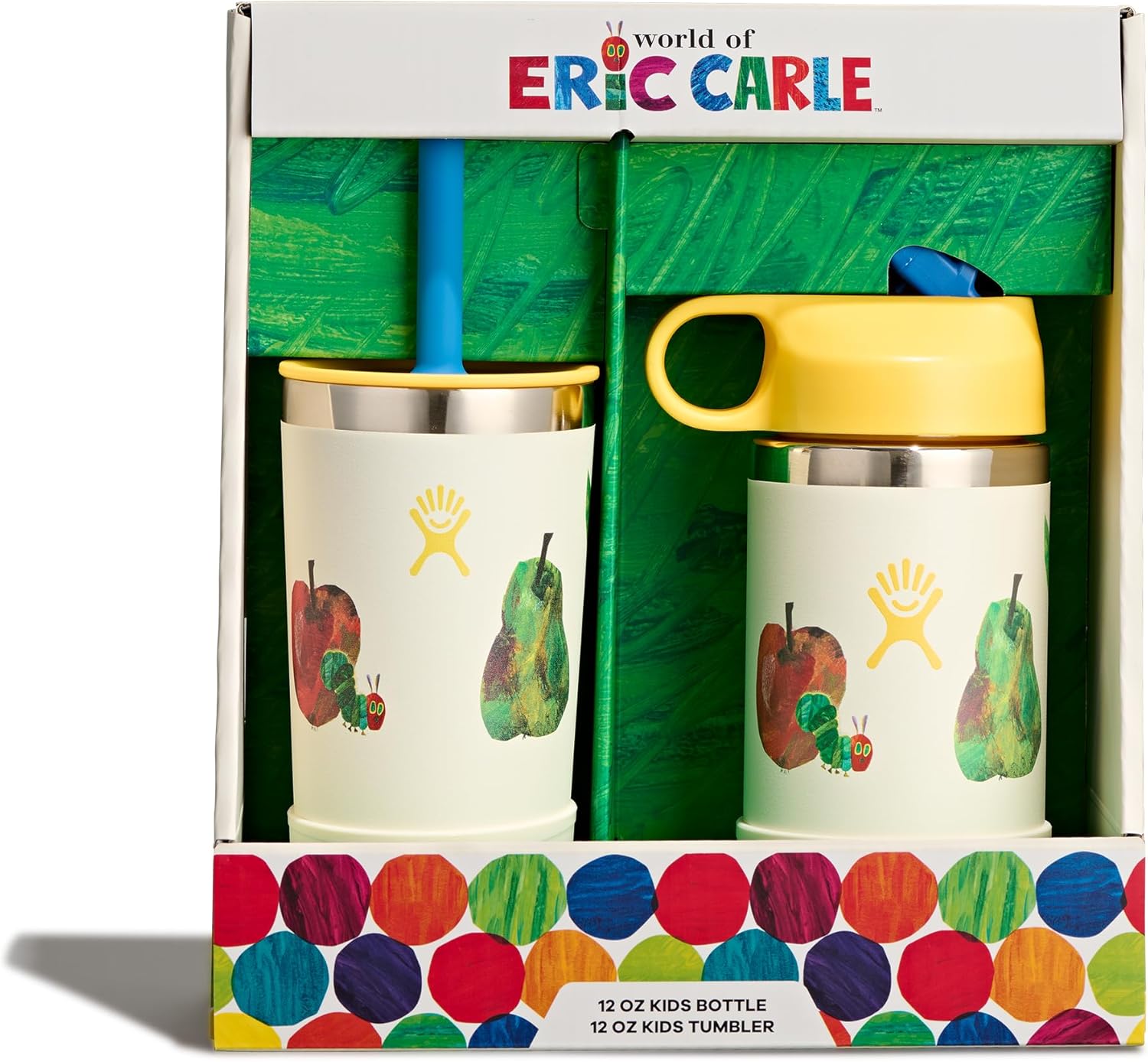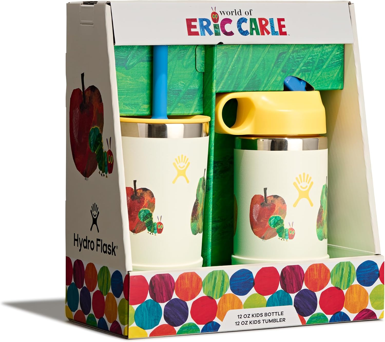 12 OZ KIDS WORLD OF ERIC CARLE FRUIT BUNDLE The Hydro Flask Kids 12 oz insulated stainless steel bottle and tumbler set is here to keep hydration close-at-hand. The insulated kids tumbler and bottle keeps drinks cold for all-day play. Ages 3+.