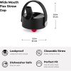 LEAKPROOF The wide mouth water bottle straw cap is leakproof when closed. Say goodbye to leaky reusable water bottles. Click it shut, and rest easy knowing your drink stays securely sealed all day.