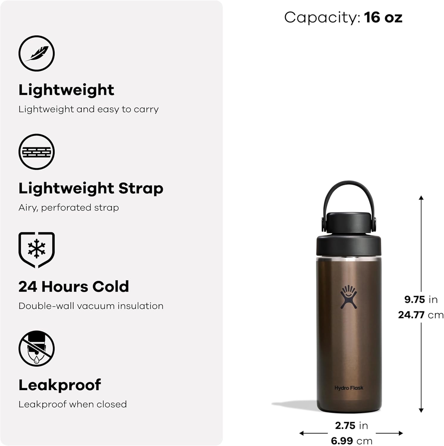 Joyfully Lightweight. The New Lightweight Series from Hydro Flask delivers the same durability and performance in a lightweight, sleek design. The ultimate hydration companion for those who want performance without the weight. Crafted with durable pro-grade stainless steel and featuring TempShield? double-wall vacuum insulation, this sleek, lightweight water bottle keeps drinks cold for up to 24 hours, making it perfect for everyday use. The modern design slides easily into bags and totes, while the perforated strap boasts aluminum pivots to ensure a comfortable, secure grip on the go. The leakproof lightweight chug-style cap means you can toss it in your bag without worry, and the stainless steel delivers pure taste. Stay hydrated with an insulated straw bottle that combines lightweight portability, superior temperature retention and reusable durability. The Hydro Flask Lightweight Series delivers everything you need in a stylish, high-performance design that is ready to move.