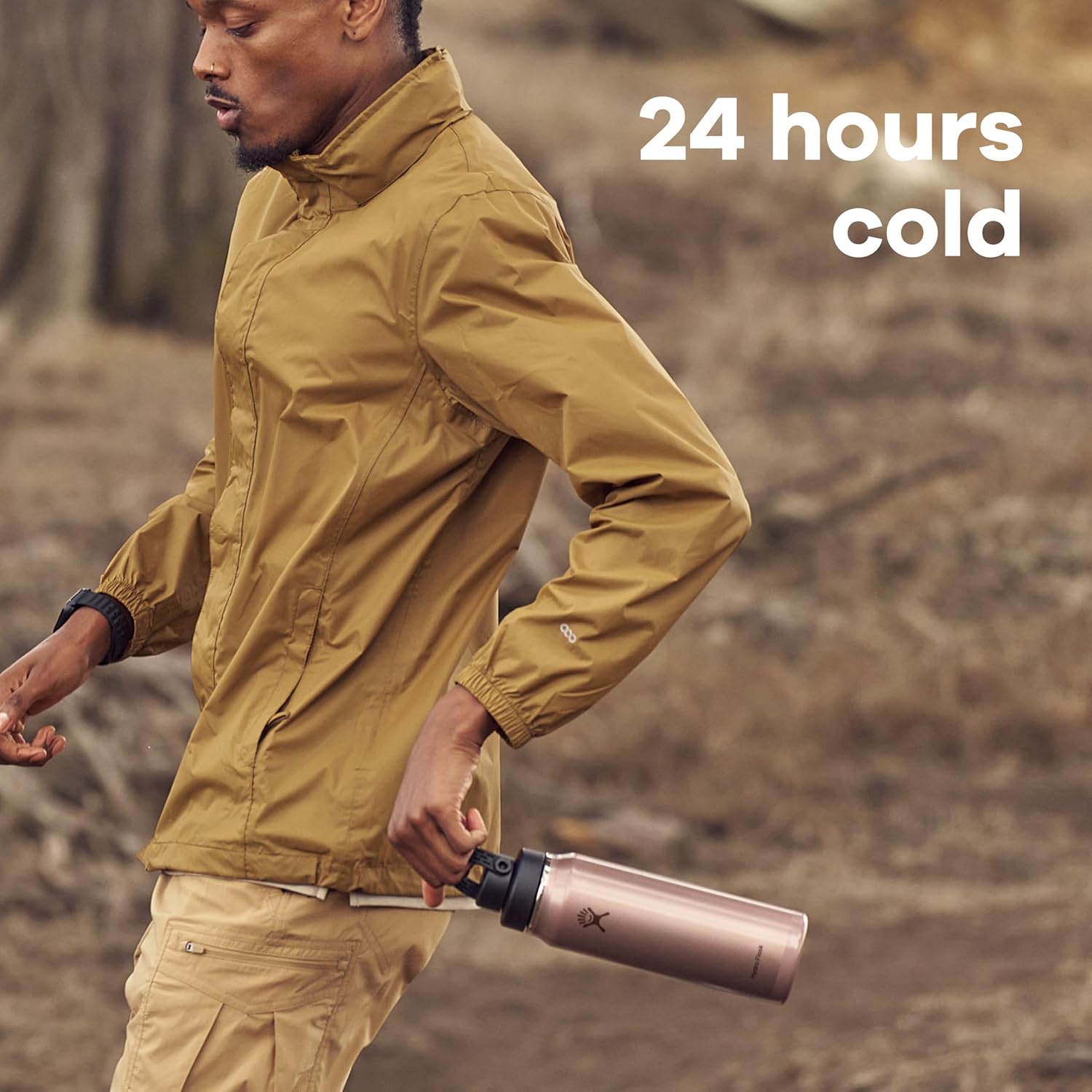 24 HOURS COLD These insulated stainless steel water bottles keep drinks cold for 24 hours thanks to double-wall vacuum insulation. Hydro Flask water bottles feature TempShield insulation, designed to be lightweight and efficient temperature retention, keeping contents chilled all day.