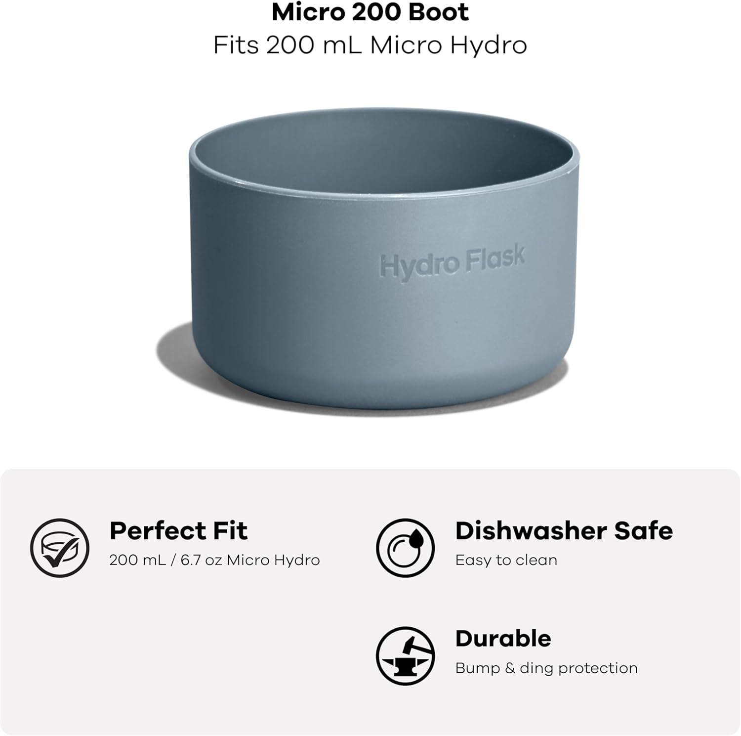 Designed exclusively to fit the 6.7 oz 200 mL Hydro Flask Micro Hydro, this mini bottle boot adds some personality and extra protection to your stainless steel water bottle. The colorful, durable silicone Micro 200 Boot is specifically sized to fit the 200 mL / 6.7 oz Micro Hydro.