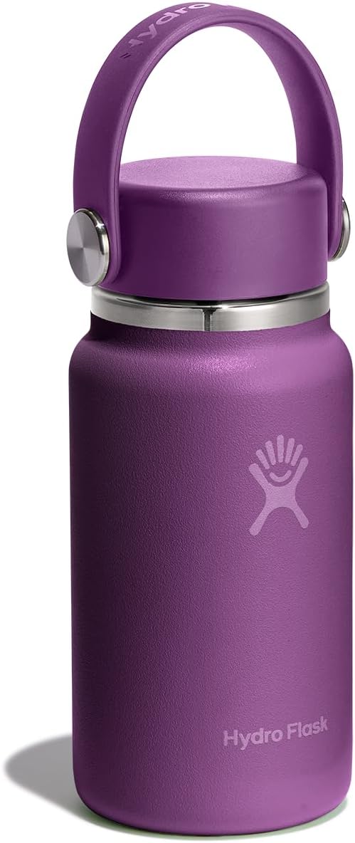 Hydro Flask Micro Bottle – Leak Proof Purse or Pocket Flask – Insulated Mini Water Bottle 6.7 Oz Beachplum Purple