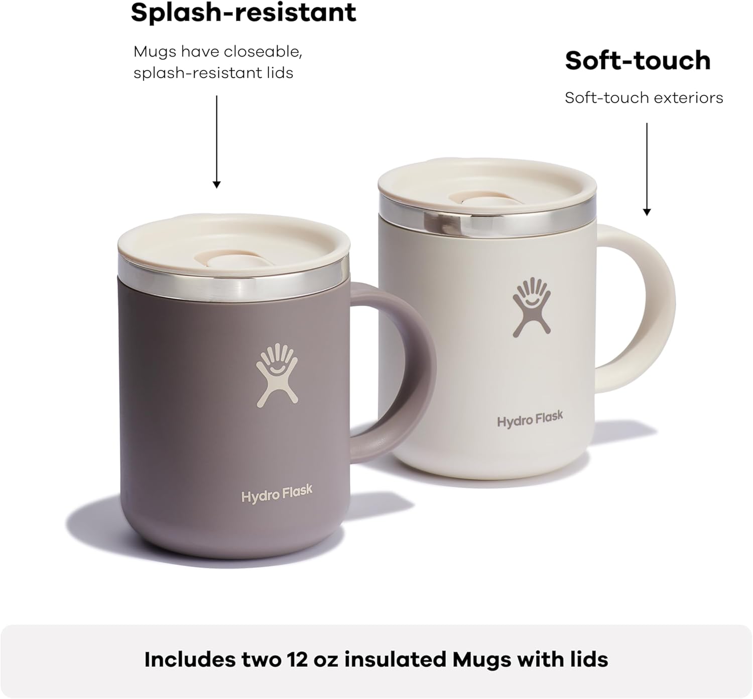 Brand: Hydro Flask , Color: Mushroom/Moonlight , Special Feature: Heavy Duty, Vacuum Insulated , Style: Gift Set , Recommended Uses For Product: Hot Drinks , Included Components: 2 Mugs , Specific Uses For Product: Hot Drinks , Shape: Cylindrical , Product Care Instructions: Hand Wash Only , Age Range (Description): Adult , Material Feature: Insulated, Heavy Duty , Reusability: Reusable , Unit Count: 2.0 Count , Number of Items: 2 , Customer Package Type: standard packaging , Finish Type: Matte , Manufacturer: Hydro Flask , UPC: 810096856951 , Size: 2-Piece , Product Dimensions: 4.49 x 4.49 x 3.5 inches , Item Weight: 1.81 pounds , Department: unisex-adult , ASIN: B0DK29CVNY , Item model number: 8901990158242 , Customer Reviews: 4.44.4 out of 5 stars(31)4.4 out of 5 stars , Best Sellers Rank: #54,086 in Kitchen & Dining (See Top 100 in Kitchen & Dining)#1,471 in Mug Sets , Date First Available: October 14, 2024 , Brand: Hydro Flask , Material: Stainless Steel , Color: Mushroom/Moonlight , Capacity: 12 ounces , Special Feature: Heavy Duty, Vacuum Insulated