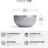 SERVING BOWL BLACK: Our stainless steel 3 quart Bowl with Lid keeps food fresh until chow time. Upgrade your tableware with this premium insulated serving bowl designed to keep every meal at the perfect temperature. This size is an ideal bowl for popcorn, fruit, soup, salads and more. INSULATED: A game changer, this insulated serving and salad bowl is sturdy, durable and keeps contents fresh. TouchShield double-wall insulation regulates temperatures while shielding hands from cold and heat transfer. PURE TASTE: Crafted of durable pro-grade stainless steel, this kicthen bowl ensures pure taste and no leftover flavor transfer. So, today’s pasta won’t have any hint of last night’s chicken salad surprise. INCLUDES LID: The press-in lid on the insulated cooking and mixing bowl keeps food contained until ready to serve. The lid fits snugly and is easy to close thanks to the simple press-in technology. DISHWASHER SAFE: Easy to use and easy to clean, wash by hand, or just toss the bowl and lid into the dishwasher. Designed for easy cleaning, this easy to clean bowl is ready for whatever culinary creation is on the menu. ? See more product details