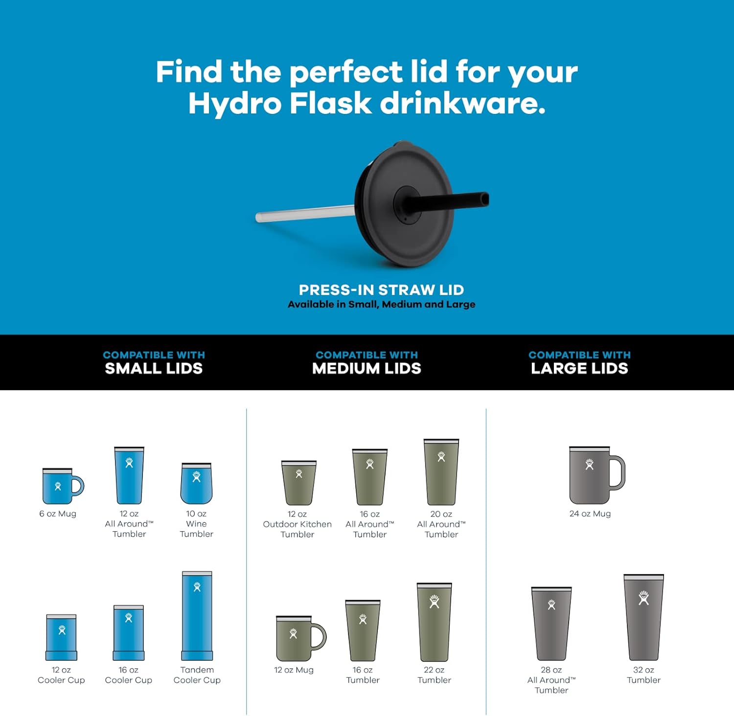 Hydro Flask Press-in Lid – Insulated – Select Size to Fit Your Tumbler or Mug