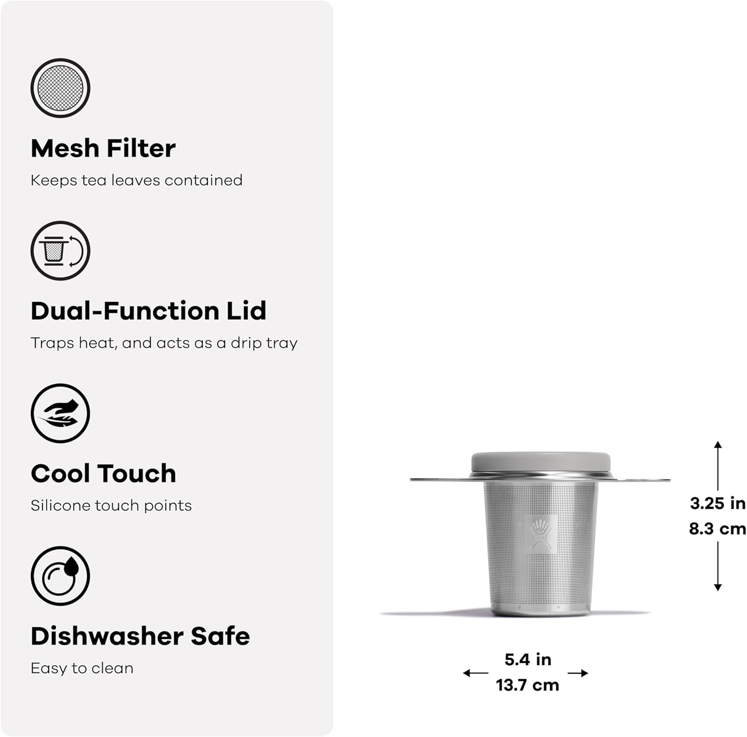 This Tea Infuser fits perfectly in all Hydro Flask mugs, tumblers and most Cooler Cups so you can steep it and sip it. With a capacity up to 16 oz of tea, leaves are treated to an optimal expansion zone while the etched openings keep fine leaves contained.