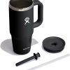 24 OZ BLACK TUMBLER The insulated Hydro Flask 32 ounce Travel Tumbler cup with easy flow straw is here to hydrate more and refill less. The insulation keeps drinks cold and the durable handle takes it to the next level. This stainless steel tumbler can go anywhere, even fitting most cupholders. Cold stays cold, and the flexible straw is easy to sip any which way.
