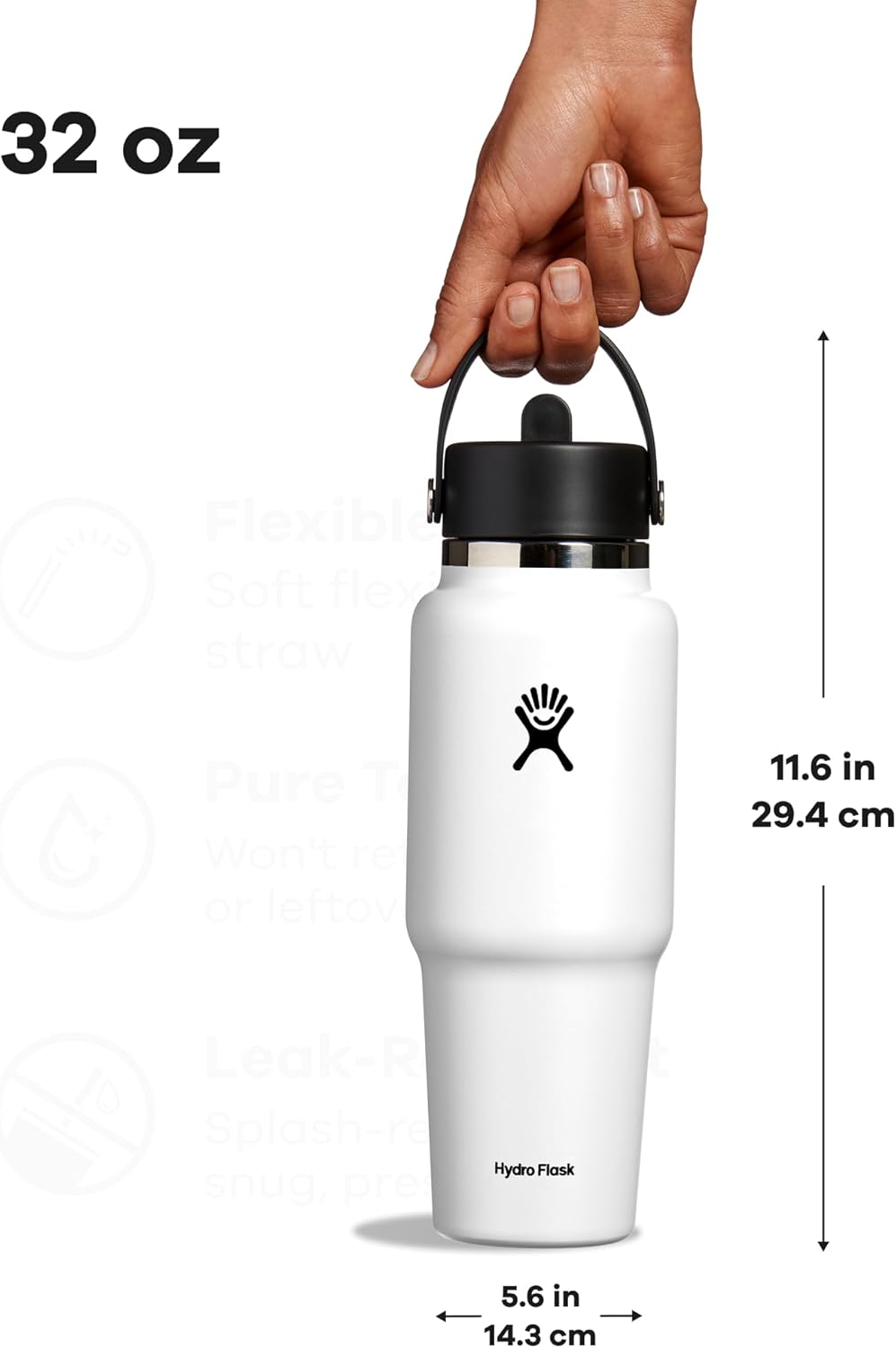 Brand Name: Hydro Flask , Recommended Uses For Product: Water , Age Range Description: Adult , Model Name: Flex Straw Travel Bottle , Included Components: Water Bottle , UPC: 840394203003 , Manufacturer: Hydro Flask , Customer Reviews: 4.64.6 out of 5 stars(1,651)4.6 out of 5 stars , Best Sellers Rank: #854 in Kitchen & Dining (See Top 100 in Kitchen & Dining)#34 in Insulated Bottles , ASIN: B0D9PC96TJ , Item Type Name: Water Bottle , Item Height: 4.17 inches , Unit Count: 1.0 Count , Manufacturer Warranty Description: LIFETIME , Capacity: 2 Pounds , Item Weight: 1.21 Pounds , Number of Items: 1 , Additional Features: TempShield? double-wall vacuum insulation , Cap Type: Straw Cap , With Lid: Yes , Material Type: Stainless Steel , Product Care Instructions: Machine Wash , Is the item dishwasher safe?: Yes , Is the item microwaveable?: No , Is Oven Safe: No , Color: White , Theme: Sport , Brand: Hydro Flask , Capacity: 2 Pounds , Color: White , Recommended Uses For Product: Water , Special Feature: TempShield? double-wall vacuum insulation