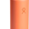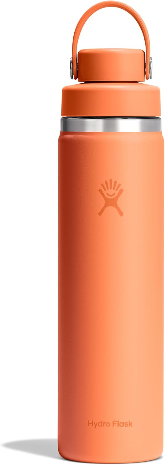 24 OZ NECTAR ORANGE BOTTLE Refresh on the go with this Hydro Flask insulated, stainless steel 20 oz Wide Mouth bottle and leakproof Chug Cap. The narrow chug spout provides a convenient, controlled flow to quickly quench your thirst. The wide mouth cap easily fits ice cubes to keep things cool.