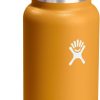 Stay hydrated with the Hydro Flask 32 oz Wide Mouth Bottle. With a comfortable, flexible handle, the reusable water bottle is leakproof with double-wall insulation to keep drinks cold up to 24 hours and hot for up to 12 hours. The insulated bottle easily fits ice cubes and is dishwasher safe. 24 hours cold. 12 hours hot. TempShield? double-wall vacuum insulation. Leakproof when closed. Won’t retain odor or leftover flavor. BPA-Free. Dishwasher safe. Easy to clean by hand or dishwasher. Stays clean and colorful. Not for use on a stove, in a microwave or freezer. Keep hot drinks out of the reach of children. Bottle fits all Wide Mouth caps and lids, including the leakproof Flex Straw Cap, Flex Chug Cap, Flex Sip Cap for hot drinks and stainless steel Flex Cap.