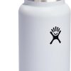 32 OZ WHITE BOTTLE Fill and refill with the Hydro Flask Wide Mouth insulated water bottle with leakproof cap. With a comfortable, flexible handle, the bottle is easy to grab and take anywhere. Double-wall insulation keeps drinks cold up to 24 hours and hot for 12 for ideal refreshment.