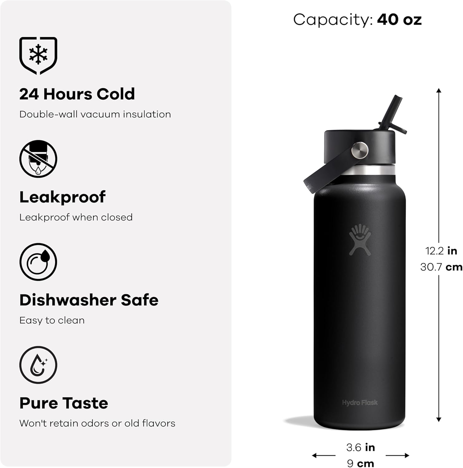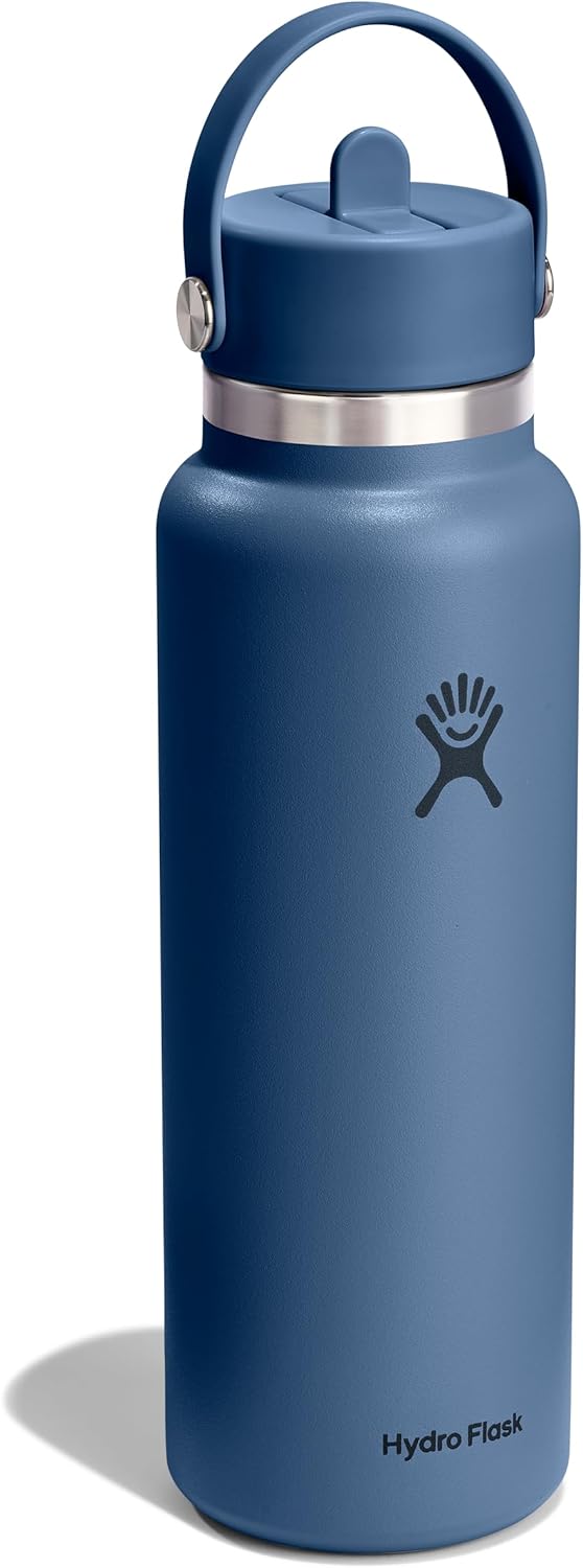 Hydro Flask Water Bottle – Insulated Stainless Steel – Wide Straw Lid, Non Spill, Leakproof in 40 Oz Harbor Blue