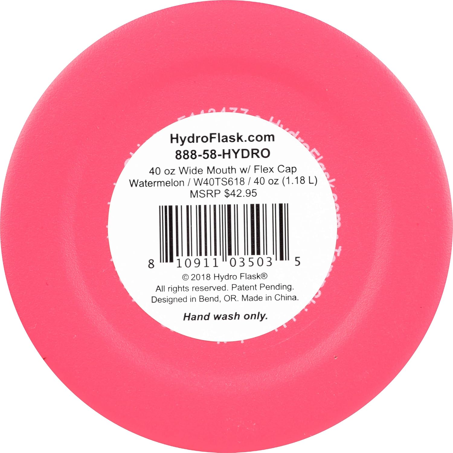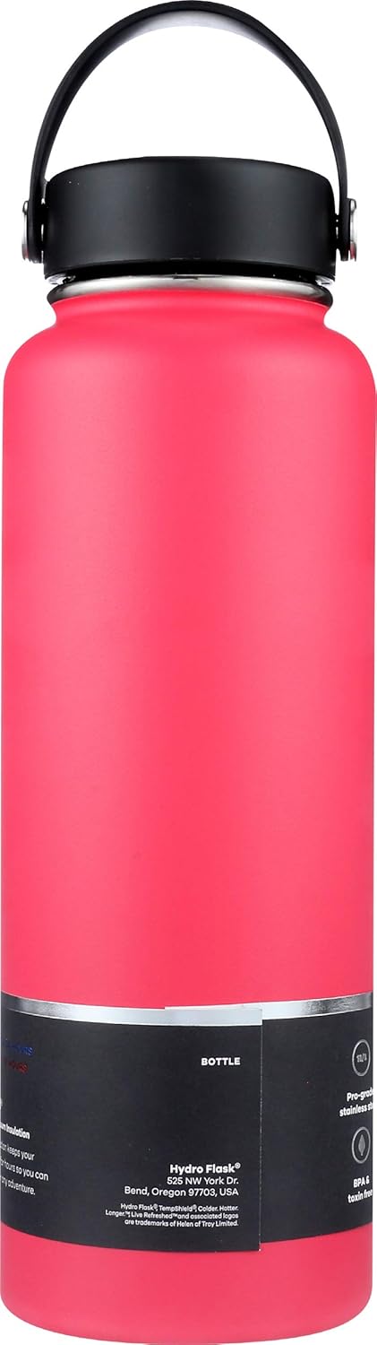 Brand: Hydro Flask , Capacity: 2.5 Pounds , Color: Watermelon , Special Feature: Cold 24 Hours , Age Range (Description): Adult , Model Name: Water-bottle , Item Weight: 1.1 Pounds , Material: 18/8 Steel , Number of Items: 1 , Included Components: Lid , Product Care Instructions: Hand Wash Only , Cap Type: Flex Cap , With Lid: Yes , UPC: 810911035035 , Manufacturer: Hydro Flask , Global Trade Identification Number: 00810911035035 , Product Dimensions: 3.57 x 3.57 x 10.4 inches , Item Weight: 1.1 pounds , ASIN: B07MZ9HCB5 , Item model number: W40TS618 , Customer Reviews: 4.74.7 out of 5 stars(405)4.7 out of 5 stars , Date First Available: February 1, 2019 , Brand: Hydro Flask , Capacity: 2.5 Pounds , Color: Watermelon , Special Feature: Cold 24 Hours , Age Range (Description): Adult